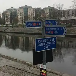 The Foss Islands Cycle track runs along the former Derwent Valley Light Railway.[2] Sections of NCN 658 were originally signed as NCN 66.[3] The route was altered and renumbered during the creation of Way of the Roses Challenge Route.