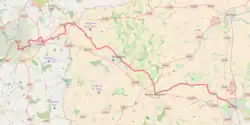 Running south from Bramham parallel to the A1(M) to Aberford, the route then takes an off-road track, through the Parlington estate to Garforth and hence on and off-road sections through Temple Newsam and into Leeds via the River Aire towpath. Bramham to Leeds is 17 miles (27 km) long.[6]