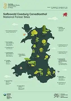 - ^ a b "First sites announced for National Forest – "Among very best woodland in Wales"". GOV.WALES. Retrieved 2022-04-29.