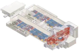 The National Ignition Facility (NIF) is a laser-based inertial confinement fusion (ICF) research device, located at Lawrence Livermore National Laboratory in Livermore, California, United States. NIF's mission is to achieve fusion ignition with high energy gain. It achieved the first instance of scientific breakeven controlled fusion in an experiment on December 5, 2022, with an energy gain factor of 1.5.[1][2] It supports nuclear weapon maintenance and design by studying the behavior of matter under the conditions found within nuclear explosions.[3]