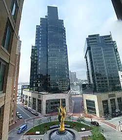 The statue by sculptor Andrzej Pitynski[2] was delivered from Poland and established in the Inner Harbor East at Aliceanna and President streets.[3]