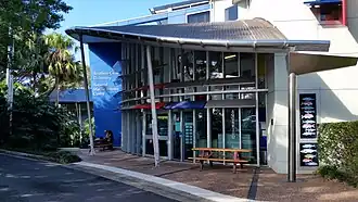 The Centre is sited within the grounds of the Novotel Pacific Bay Resort, a few kilometers north of Coffs Harbour. The building was at one time the resort's sports centre, gymnasium, squash courts, and alfresco restaurant.