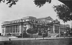 The building was originally designed by the Bureau of Public Works (precursor of the Department of Public Works and Highways) Consulting Architect Ralph Harrington Doane[4] and Antonio M. Toledo in 1918, and was intended to be the future home of the National Library of the Philippines, according to the Plan of Manila of Daniel H. Burnham.[5] Meanwhile, a Capitol building for the Philippine Legislature (established on October 16, 1916) was to rise on Wallace Field, just south of the library (the location is now María Y. Orosa Street in Rizal Park). Instead, the Philippine Legislature decided to move into the Library building in 1926, and changes to the building's layout were done accordingly by architect Juan M. Arellano.[5] It was built under the supervision of the architecture firm of Pedro Siochi and Company and the building therefore became known as the Legislative Building. The Second Regular Session of the 7th Philippine Legislature was formally opened on the inauguration of the building on July 16, 1926, in the presence of Governor-General Leonard Wood, then Senate President Manuel L. Quezon, House Speaker Manuel Roxas, and Colonel Carmi A. Thompson, envoy of President Calvin Coolidge of the United States.[4] It was concurrently the headquarters of the National Library from 1928 to 1944.