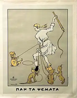 By the fall of 1915, a propaganda war was being conducted in the Greek newspapers between Zaharoff, who used his vast wealth to start buying up newspapers to campaign for Venizelos vs. Baron von Schneck, the press attache at the German legation who purchased newspapers to campaign for the king.[24] At the time, Schneck was described by one British journalist as "a great and mysterious power for evil who was leading the Greek nation astray and seducing it from the right path-from Venizelos and from the Entente".[24] The head of Allied propaganda in Greece, a French naval officer, Captain de Roquefeil, was inept, leading Zaharoff to intervene as he argued that as a Greek he knew Greek mentalities far better than any Frenchman could.[24] Antiwar and pro-German propaganda were made by newspapers Embros of Kalapothakis, Script and later Kathimerini and pro-Allied by Ethnos, Eleftheros Typos, Estia and Makedonia among others. Many documents and papers were also falsified during this period, and the propaganda war reached its peak.