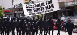 - ^ Hedgeman, Andrew (9 August 2025). "Neo-Nazis march through Melbourne CBD with 'White Man Fight Back' sign". News.com.au. Retrieved 9 August 2025.