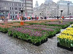 National Tulip Day (Dutch: Nationale Tulpendag) is an annual event in January that preludes the tulip season in the Netherlands. The event has been held on the Dam Square in the centre of Amsterdam since 2012. In 2021 and 2022 it was cancelled because of the Covid pandemic. In 2023 the event took place at Museum Square (Museumplein). During this day a special garden of 200,000 tulips covers the square. In the morning people can view the tulips from a gangway, and in the afternoon they can pick tulips for free. The tulips are from North Holland.