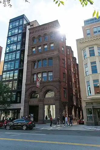 It was designed by Glenn Brown in 1890, and is an example of the Richardsonian Romanesque style of architecture. The fire proof steel frame brownstone was built for the National Union Fire Insurance Company.[3]