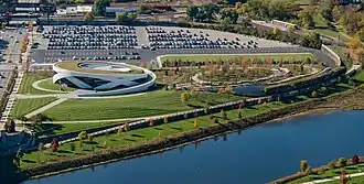 The site along the west side of the Scioto River near the Discovery Bridge on Broad Street was originally home to the Franklin County Veterans Memorial,[2] which originally opened in 1955[3] and was demolished to make way for the museum in early 2015,[4] by S.G. Loewendick & Sons.[5] The construction of a veterans museum was envisioned by city boosters and received support from former Senator and World War II veteran John Glenn.[6]
