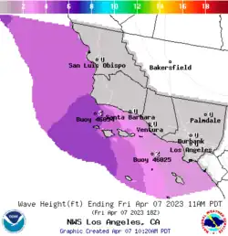 Wave height map created by National Weather Service Los Angeles showing jurisdiction on land (gray) and sea (purple)