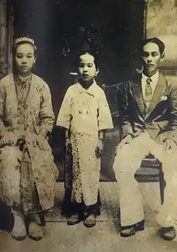 Banong (Thai: บานง Thai pronunciation: [bāː.nōŋ]) is a type of blouse traditionally worn by women in the southern border provinces of Thailand, including Pattani, Yala, and Narathiwat.[18] It has a collar and is cut in front, with a folded placket all the way to the hem. The fabric used to make Banong is often thin and sheer, and may be embroidered with patterns on the hem. It is typically worn during religious and cultural events like weddings, funerals, and dance performances. The name Banong comes from the word Bandung in Middle Malay, which refers to a city in the west of Java Island, Indonesia. While Banong is popular among Thai Muslims in the southern border provinces, it is also worn by Thai Buddhists and Thai Chinese in the region.[19][20]