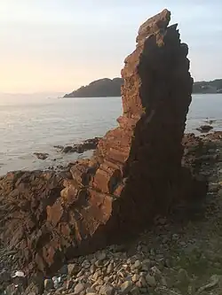 The oldest rock found on the Natsudomari Peninsula can be found exposed on Mount Higashidake, south-southeast of Asamushi Onsen. The mountain's rock is granodiorite that was formed during the Callovian.[4] The second oldest rock is a mixture of Late Jurassic chert and limestone known as the Tateishi Formation. The Tateishi Formation can be seen along the peninsula's east coast. These two formations make up the basement rock of the peninsula.[5]
