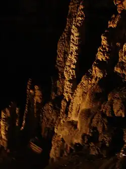 Flowstone is a dominant feature of the caverns. -