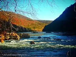 ![]() The James River is framed by crossing railway lines at Natural Bridge Station. | |