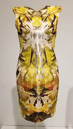 Natural Dis-tinction Un-natural Selection (Spring/Summer 2009) is the thirty-third collection McQueen made for his eponymous fashion house.[20] According to the show's program notes, McQueen drew inspiration from the theory of natural selection as described by Charles Darwin in his seminal 1859 work On the Origin of Species.[16][21] Natural Dis-tinction is known for its pioneering use of digital prints, which were engineered to match the patterns of their garments, rather than the usual practice of the pattern being cut to accommodate an existing print.[22][23] The collection's prints were derived from natural materials, in the latter half manipulated to appear kaleidoscopic.[24][25] Two distinct phases of designs contrasted the beauty of nature with the impact of human industry.[11][26][17]