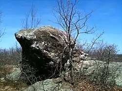 The Naugatuck Trail is primarily used for hiking,[5] backpacking, picnicking,[6] and in the winter, snowshoeing.[7] Portions of the trail are suitable for, and are used for, mountain biking and cross-country skiing. Site-specific activities enjoyed along the route include hunting, fishing, horseback riding, bouldering and rock climbing (access). There are signs at the Connecticut Route 42 trail head forbidding rock climbing.[4][8]