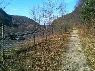 Naugatuck Trail parallel to Connecticut State Route 8 and the Naugatuck River | |