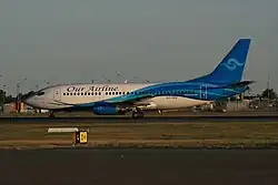 In March 2006, the government of the Republic of China, reportedly as a reward for Nauru's diplomatic recognition of the ROC instead of the People's Republic of China,[29] assisted Air Nauru with the purchase of a second-hand Boeing 737, which was expected to be in operation by mid-2006, after several logistical delays. This purchase was put on hold in May 2006 due to OzJet and Air Pacific (now Fiji Airways) having started on the routes formerly operated by Air Nauru.[30] In October 2006 the new Boeing plane came into service. The plane was registered as VH-INU and named as 'Naoero'. In 2008, the Airline bought their second Boeing 737-300 adorned with a full Norfolk Air livery, remaining till now despite Norfolk Air's current state of closure. The plane was registered as VH-NLK. Later in March 2013, the Airline purchased a Boeing 737-300 from GECAS. The plane was painted in the 'Our Airline' livery in Melbourne, making its first visit to Brisbane Airport on 3 September 2013.[31]
