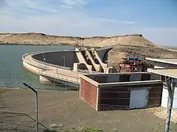 The Naute Dam is a dam outside of Keetmanshoop in the Karas Region of Namibia. It was built by Concor between 1970 and 1972 and was officially commissioned in September 1972. It is the third largest dam in Namibia after Hardap Dam to Naute's north and can hold up to 69 million cubic metres of water. The dam's source is the Löwen River, a tributary of the Fish River.[1]