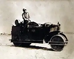 Seabee on a captured Japanese steam roller