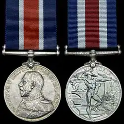 - The King George V version displays his effigy, facing left, and is circumscribed "GEORGIVS V BRITT: OMN: REX ET IND: IMP:". The obverse is identical to that of the first King George V version of the Naval Long Service and Good Conduct Medal (1848).[7][10]