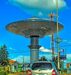 The Nave Espacial de Varginha (Portuguese pronunciation: [ˈnavjispasiˈaw dʒi vaʁˈʒĩɲɐ], Varginha's spacecraft), located in Varginha, Brazil, is a 20-meter-tall water tower with a disc-shaped water reservoir. It was built in 2001, and commemorates the so-called Varginha UFO incident of 1996.