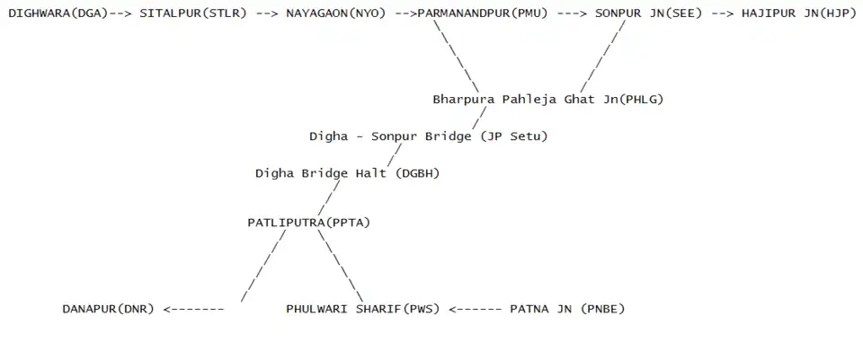 Nayagaon falls under the jurisdiction of Sonpur railway division. Route between Nayagaon and Digha Bridge Halt: pathGoogle location