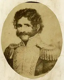 In November 1829 Benavídez was in the vanguard of the army led by General José Benito Villafañe.[13] In February 1830 Villafañe, who was in Córdoba Province with 1,400 men and a field artillery battery, failed to join his forces with Quiroga. As a result, Quiroga was defeated by Unitarian general José María Paz, losing 200 men and his baggage train.[14] Villafañe signed an armistice with Paz on 5 March 1830.[15] While some of his troops accepted the pact, others under Benavídez split away and marched to San Juan, where he joined an unsuccessful revolt against the Unitarian General Nicolás Vega.[16] He was taken prisoner on 18 May 1830, but escaped on 3 November 1830 along with other Federalist leaders during an uprising in the city and fled to Chile.[17] From there he organized montoneras, irregular forces that operated from the Sierra del Tontal to the Estancia Maradona, near to San Juan. The tide started to turn in favor of the Federals, with Quiroga winning a victory over José Videla Castillo at the Battle of Rodeo de Chacón on 28 March 1831. On 8 April 1831, Captain Benavides entered the city of San Juan at the head of forty-one soldiers.[18]