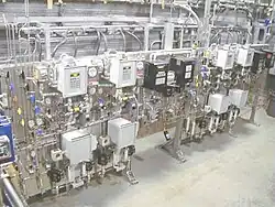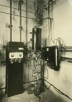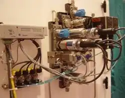 The hardware (traditionally metal tubing, compression fittings, valves, regulators, rotameters and filters) associated with extractive sampling is collectively referred to as the sampling system. Sample systems are used to condition or adjust the sample conditions (pressure, amount of particulate allowed, temperature and flow) to a level suitable for use with an analytical device (analyzer) such as a gas chromatograph, an oxygen analyzer or an infra red spectrometer. Despite the simple explanation just given, modern sampling systems can be quite large, complex, and expensive. The design features of analytical sample systems have changed little, when the discipline of Process Analytics began in Germany, right through until the present day. An example of an early analyzer and sample system used at the Buna Chemical Works (Schkopau, Germany), is shown in the following photograph. Process analytics remains exceptional in the fact that it is the last outpost of low level automation (retains manual adjustments and visible checks) within the process industries.