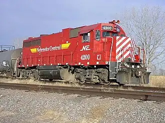 Launched in 1993, the Nebraska Central Railroad (reporting mark NCRC) is a shortline railroad that operates about 340 miles (550 km) of track solely in Nebraska. It runs on former Union Pacific Railroad and BNSF Railway track in central Nebraska. It is a subsidiary of the Rio Grande Pacific Corporation.[1][2]