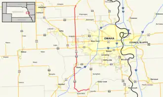 - ^ a b c d e "Nebraska Highway Reference Log Book" (PDF). Nebraska Department of Roads. 2015. pp. 109–110. Archived from the original (PDF) on February 15, 2020. Retrieved January 7, 2017.