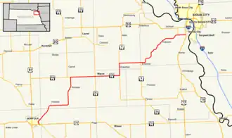 Nebraska Highway 35 (N-35) is a 69.51-mile (111.87 km) state highway in northeastern Nebraska, United States, that connects U.S. Route 275 (US 275) and Nebraska Highway 24 (N-24) in Norfolk (in Madison County) with U.S. Route 75/U.S. Route 77 (US 75/US 77) immediately west of Dakota City (in Dakota County). N-35 is maintained by the Nebraska Department of Transportation (NDOT) and serves as a connector between Norfolk and Sioux City, Iowa. For its entire length (except when it passes through the cities of Wayne and Wakefield) N-35 runs through rural agricultural land.[3]
