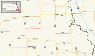 - ^ a b c d e f g "Nebraska Highway Reference Log Book" (PDF). Nebraska Department of Roads. 2015. p. 160. Archived from the original (PDF) on February 15, 2020. Retrieved January 7, 2017.