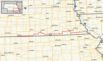 - ^ a b c "Nebraska Highway Reference Log Book" (PDF). Nebraska Department of Roads. 2015. pp. 33–35. Archived from the original (PDF) on February 15, 2020. Retrieved January 6, 2017.