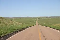 N-92 begins at the Wyoming border west of Lyman and after a brief turn south, heads east passing around the north side of Scotts Bluff National Monument, crosses the North Platte River for the first of three times, and enters the town of Scottsbluff. Starting in Scottsbluff, N-92, US 26, and the North Platte River form a three-way braid, crisscrossing one another several times for 91 miles (146 km) until Lewellen. At Scottsbluff, it overlaps US 26 and N-71, crossing the North Platte River again to its south side, to Gering, where it then turns to the east-southeast, following the route of the Oregon Trail, paralleling the North Platte River and US 26 on the other side of the river. Near Chimney Rock National Historic Site, it overlaps US 26 again until Bridgeport. After a brief concurrency with US 385, it goes southeast until it crosses the North Platte for the third time just before Broadwater. It then again overlaps US 26 a third time from there until Lewellen, where it separates to go through the resort communities along the north shore of Lake McConaughy until it meets N-61.[1][2]