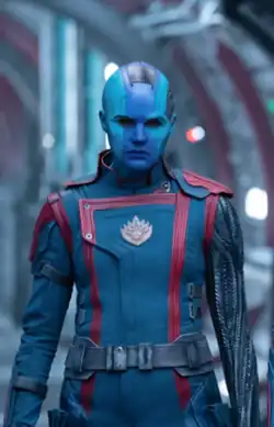 In her debut in Guardians of the Galaxy, Nebula is depicted as a loyal lieutenant in the employ of Ronan and Thanos.[18][19] About the character, Gillan said, "She is the female villain of the film ... She is very sadistic and evil, but I like to think for a very valid reason."[20] She also added, "I think she's a really interesting character. What I like to play around with is how jealous she is. She's Gamora's sister, and there's a lot of sibling rivalry. That's the most interesting aspect to me, because jealousy can consume you and turn you bitter, and ugly. And she's a total sadist, so that's fun too."[21] Gillan researched the ancient Spartans, shaved off her hair, and trained for two months for the role.[21][13] The character's makeup took approximately four-and-a-half hours to be applied.[21] On the first day of filming, as Gillan and Gunn discussed on how to portray the character, Gunn suggested an impression of Marilyn Monroe, particularly in her breathy delivery which he considered "a similar voice to Clint Eastwood."[22]