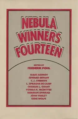 Nebula Winners Fourteen is an anthology of award winning science fiction short works edited by Frederik Pohl. It was first published in hardcover by Harper & Row in August 1980. The first British edition was published in hardcover by W. H. Allen in April 1981. Paperback editions followed from Star in the U.K. in March 1982 and Bantam Books in the U.S. in July 1982.[1]