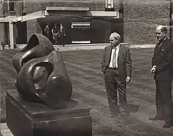 The next day, the gracious Sir Basil takes the narrator on a tour around the vast estate. Stopping to rest, the two men sit on a bench overlooking the garden and begin chatting, at which time the narrator notices a woman wandering in the garden. She is soon joined by a man who is carrying in his hand a small camera. The two figures approach a piece of sculpture (a wooden piece by Henry Moore) and appear to be laughing at it. The man begins to take pictures while the woman strikes ludicrous poses beside the piece, at one point sticking her head through one of its holes. The man takes more pictures and, from the narrator's perspective, leans down and kisses the woman, her laughter filling the air.