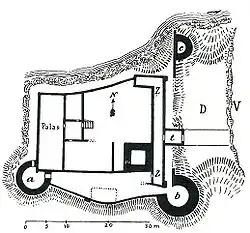 A neck ditch (German: Halsgraben),[1][2] sometimes called a throat ditch,[3][4] is a dry moat that does not fully surround a castle, but only bars the side that is not protected by natural obstacles. It is often an important element in the defensive system of hill castles, especially in Germany and other parts of Central Europe.