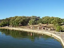 Necochea became an important domestic tourism destination in Argentina during the 20th century, and the number of registered hotel rooms surpassed 50,000 by 2011; occupation by then exceeded 95% during the summer high season.[2] Its municipal beaches grew to 72 kilometres (45 mi), reaching up to 200 metres (660 ft) in depth. The 640 hectare (1600 acre) Miguel Lillo Park, established in 1979, is the only public maritime forest nature reserve in Argentina.[3] The park is also known for its swan's lake, tourist railway, and the Regional Historical Museum housed since 1981 in the Spanish Colonial Revival house originally belonging to the Díaz Vélez estancia.[4]
