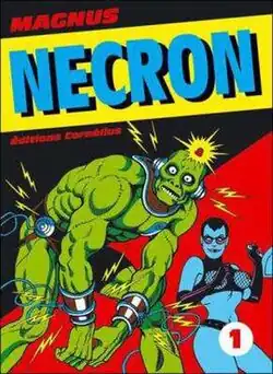 Necron debuted in January 1981, published by editor Edifumetto; the authors, writer Mirka Martini and illustrator Roberto Raviola, signed the comics with the pen names Ilaria Volpe and Magnus.[1] Necron was initially intended to be a single episode, but the publisher convinced the authors to make a whole miniseries.[1][2] The series closed after 11 episodes in November 1981, then the character returned in a twelfth out of series episode in 1983, and finally in two special issues in June 1985.[3] During the years, the series was republished and several anthologic books were released.[3]