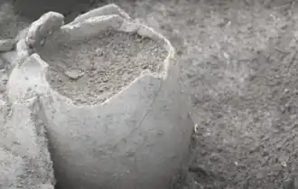 The site was discovered in early 2024 during excavations for an electricity station linked to a high-speed rail project. While the burial mounds had been long visible and recognised as ancient features for centuries, the recent excavations revealed numerous tombs surrounding them that were previously undiscovered.[8] In April 2024 the local cultural heritage authority announced the discovery to the press. Amorosi's mayor, Carmine Cacchillo, described the discovery as "of decisive importance for the history of our culture".[1] The excavation, supervised by the Soprintendenza (Superintendency) Archeologica Belle Arti e Paesaggio (SABAP), of Caserta and Benevento,[9] was carried out by Terna's Archaeology Unit and conducted on-site by the archaeological company SAP.[10] The scientific aspect of the discovery is governed by the archaeologist Andrea Martelli.[11] Specialists, including restorers, anthropologists and paleobotanists, contributed to gathering data aimed at reconstructing as much as possible about the ancient population. Various entities made contributions to the project. The Municipality of Amorosi provided support, while law enforcement agencies like Carabinieri protected the archaeological site.[10] The Terna's group involvement in the preservation and study of the Necropolis of Amorosi showcases a collaboration between industry and archaeology. The uncovered tombs and bodies are being analysed in a laboratory provided by the Municipality of Amorosi established at the excavation site, according to a statement from the authorities.[10]