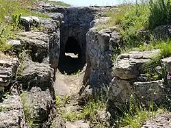 The necropolis is one of the best-preserved of its kind. The similarity between the design of the three caves clearly indicates that the builders were following a clear plan. Cave 1, to the east, has a circular chamber with a diameter of about 4.5 metres. The skylight was 1.30 metres high, while the entrance to the chamber was 0.83 metres high. The narrow entrance corridor was around 5 metres long and was probably originally covered with limestone slabs. The entrance to this cave faces approximately northeast, while the entrances to the other two face approximately southeast. Cave 2 has a circular chamber also with a diameter of approximately 4.5 metres and a corridor of 5.5 metres. The chamber is about 1.75 metres high and the skylight has a diameter of 1.60 metres. Cave 3, the smallest, has a chamber with a diameter of just under 4 metres. The skylight appears to be larger than those of the other caves but this is because it has eroded over the years.[6]