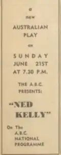 - ^ "Play on the Air Ned Kelly-a Hero yet thoroughly Bad", ABC Weekly, 4 (25), Sydney, 20 June 1942, nla.obj-1331671196, retrieved 22 October 2023 – via Trove