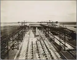 On the day of the opening the new shipyard started its activity with the construction of a new floating drydock using two of the slipways at the same time. It was ordered by the ADM and measured 650 feet (200 m) by 130 feet (40 m) and had a hold of 56? feet.[41] Mr. Goedkoop, CEO of NSM noted that it was a bit weird to open a new shipyard while many were closing down. He noted that the situation of the shipbuilders had never been so desperate. Global tonnage was way above what was needed. Many ships had been laid up, and many of those still sailing did so at a loss. Shipping lines ordered almost nothing, and competition was so fierce that only very well established companies made a chance to get orders that did not result in a loss, or resulted in only a very limited loss. All this made that there was little reason for festivities, especially because there was no end in sight for the problems. Goedkoop thought the NSM to be able to withstand the crisis. It had an old shipyard that was well equipped, and written off financially. The new shipyard was very well equipped, and therefore also had a low cost structure. NSM also had competent staff and laborers. However, the shareholders, staff and laborers, from the board till the lowest apprentice should realize they would have to be satisfied with somewhat less than before.[41] Indeed NSM increased its number of employees by 50% in the second half of 1922, but it also lowered its dividend over 1922 to 5% even while it had enough work.[42]