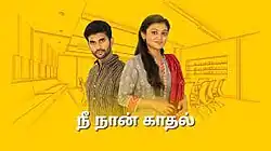 Nee Naan Kaadhal (transl. You, Me and Love) was a 2023-2025 Indian Tamil drama television series that aired on Star Vijay from 13 November 2023 to 25 April 2025 for 384 episodes. It starred Prem Jacob and Varshini Suresh with VJ Dhanusek Vijayakumar (who later replaced by Suwetha), Saai Gayathri (who later replaced by Asritha Sreedas later rereplaced by Saai Gayathri), Shankaresh Kumar and Naveen Muralidhar.[1][2][3]
