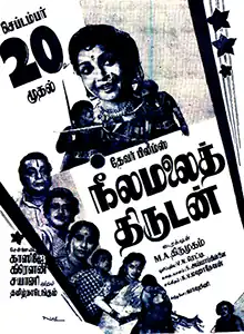 Neelamalai Thirudan (transl. Thief of the Blue Hill) is a 1957 Indian Tamil-language swashbuckler film[1] directed and edited by M. A. Thirumugam, produced by Sandow M. M. A. Chinnappa Thevar and written by S. Ayyaiah Pillai. The film stars R. Ranjan and Anjali Devi, with T. S. Balaiah, K. A. Thangavelu, P. S. Veerappa, M. K. Radha, E. R. Sahadevan, Kannamba and E. V. Saroja in supporting roles. It revolves around a man seeking to avenge his family that was separated during his childhood due to his greedy uncle.