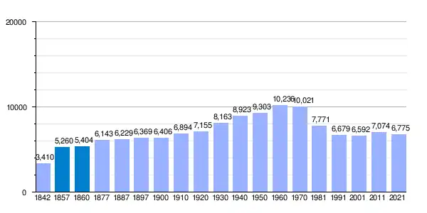| demographic vertical bar chart of Negreira[2] between 1842 and 2021 |