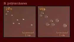 | An image of the culture of Neisseria polysaccharea at 24 and then 48 hours from the Centers for Disease Control | |