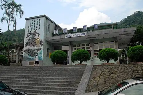 Neiwan (traditional Chinese: 內灣車站; simplified Chinese: 内湾车站; pinyin: Nèiwān Chēzhàn) is a railway station on the Taiwan Railways Administration Neiwan line located in Hengshan Township, Hsinchu County, Taiwan.