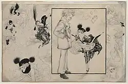 Nell Brinkley was born to Robert Serrett Brinkley and May French Brinkley[1] in Denver, Colorado in 1886 and in 1893 her family moved to the small town of Edgewater on Denver's western border, facing Sloan's Lake at Manhattan Beach. Her father Robert Brinkley would later become the mayor of Edgewater.[2] As a small child, she drew place-setting illustrations of knobby-kneed kiddies for Mary Elitch's garden parties at Elitch Gardens. She had no formal arts training, and dropped out of high school to pursue a career in illustration.[3] She did cover and interior illustrations for the 1906 children's book, Wally Wish and Maggie Magpie by A.U. Mayfield.[4] She did pen-and-ink drawings for The Denver Post and the Rocky Mountain News.